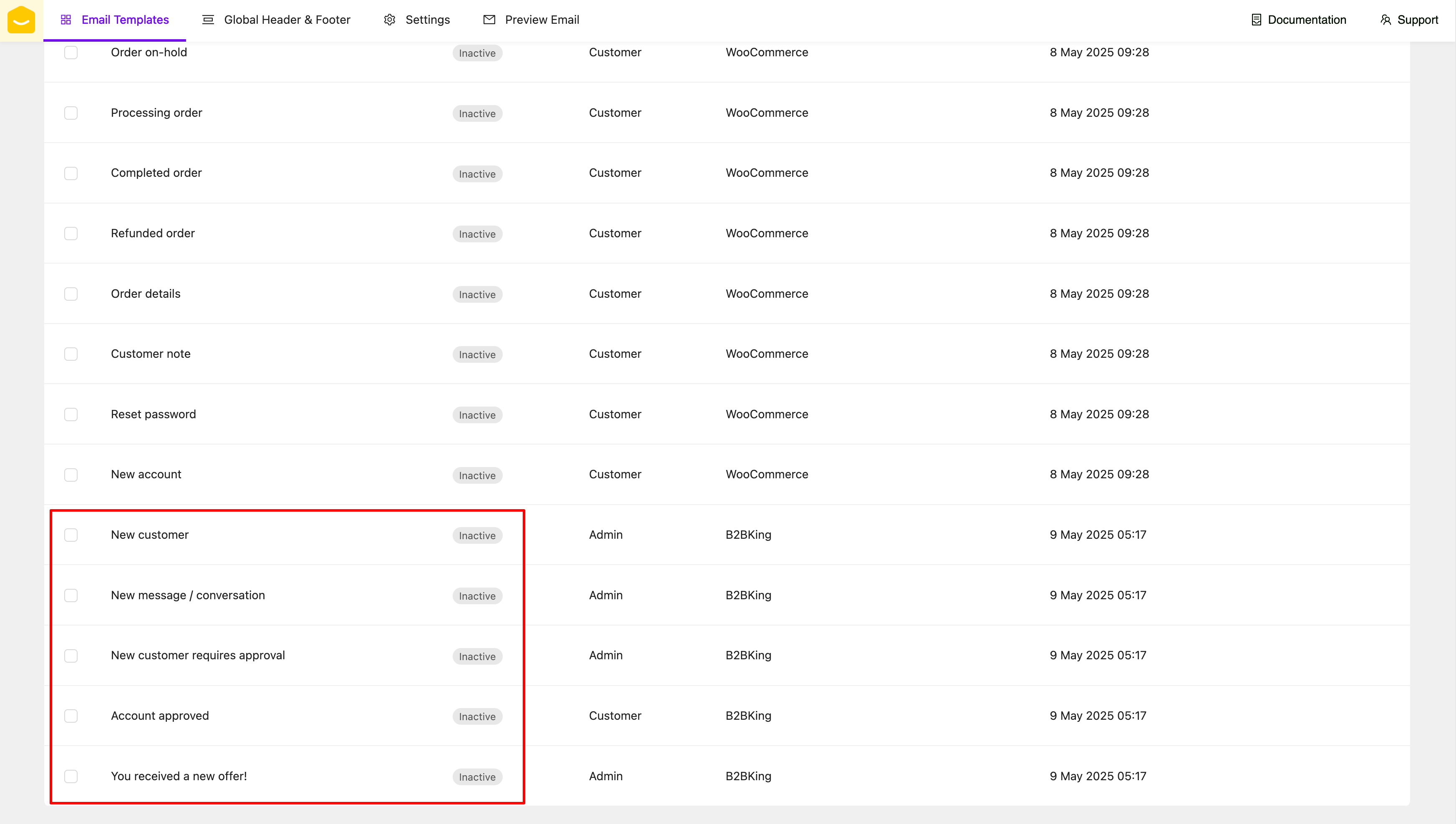 [YayMail Addon for B2BKing](https://yaycommerce.com/yaymail-addons/yaymail-addon-for-b2bking/) allows you to customize templates generated by B2BKing plugin (by WebWizards ) in YayMail interface.