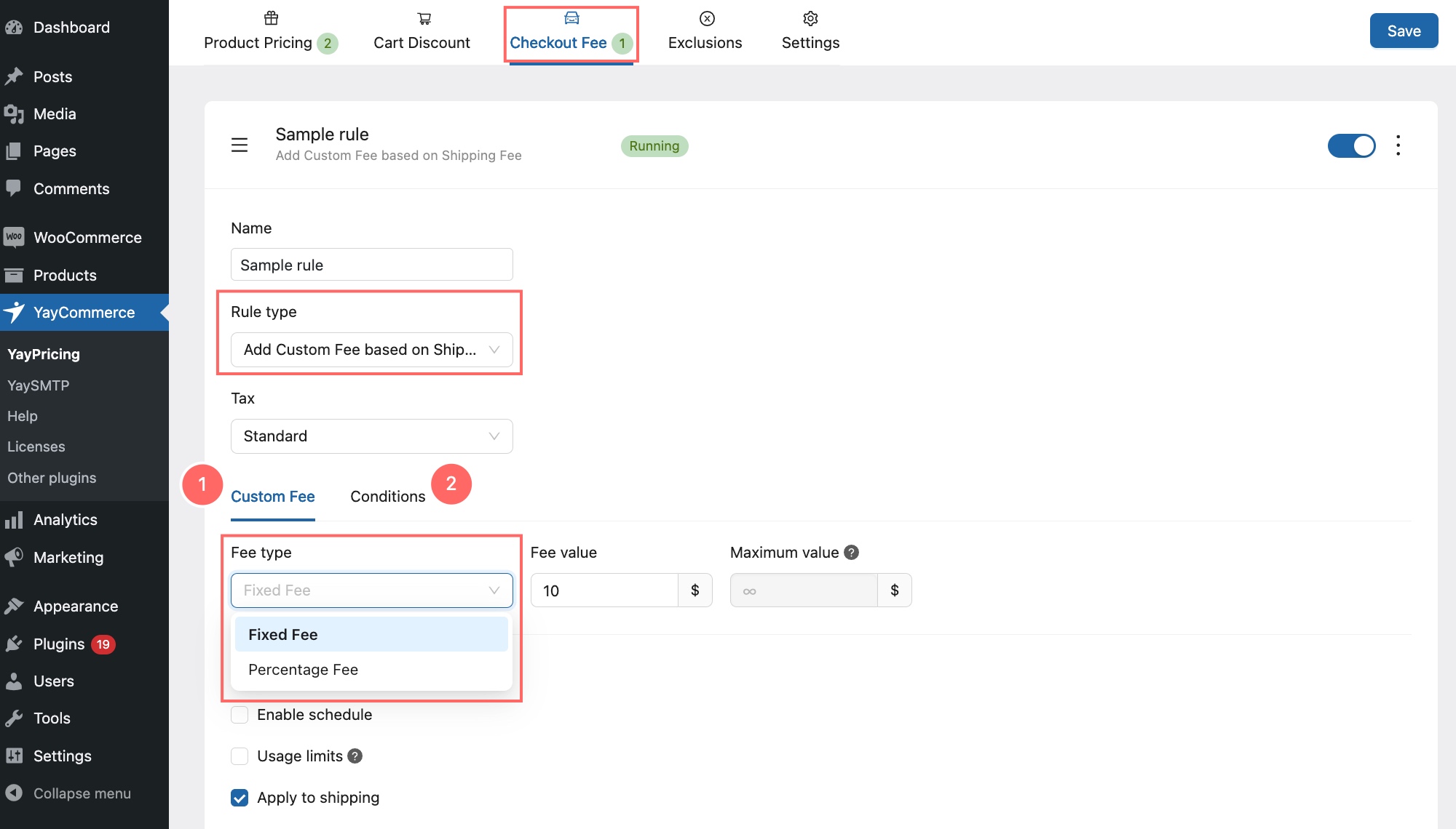**Note**: YayPricing allows users to add settings to enable tax calculations for the checkout fee. This means that when your store sets a tax rate for customers' checkout, YayPricing will include this rate in your shipping fee.