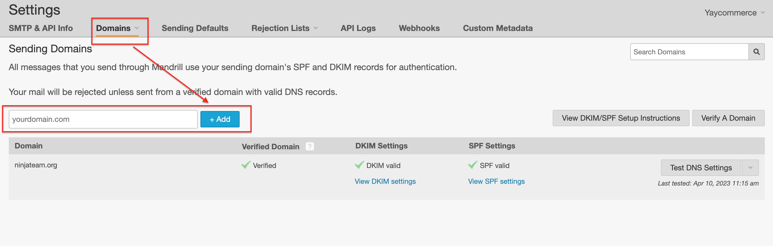 1. Add a domain and verify it.