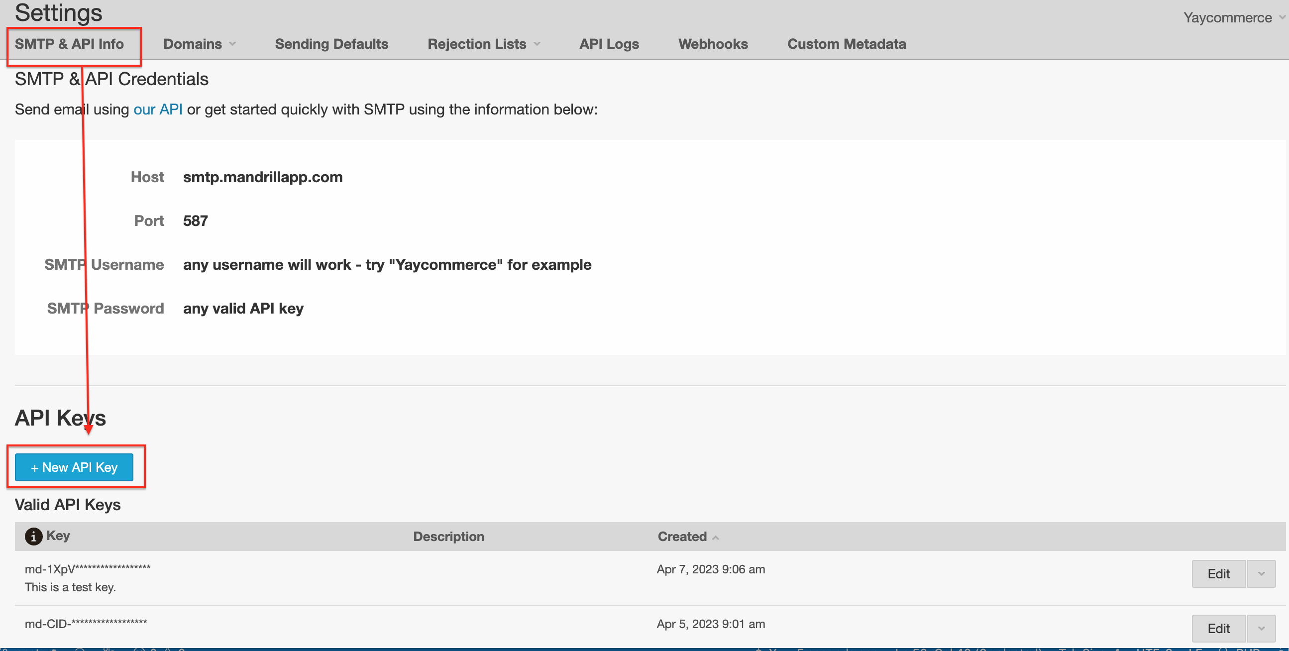 Then, copy API Key as image below and paste into **API Key** field of YaySMTP settings on your website.
