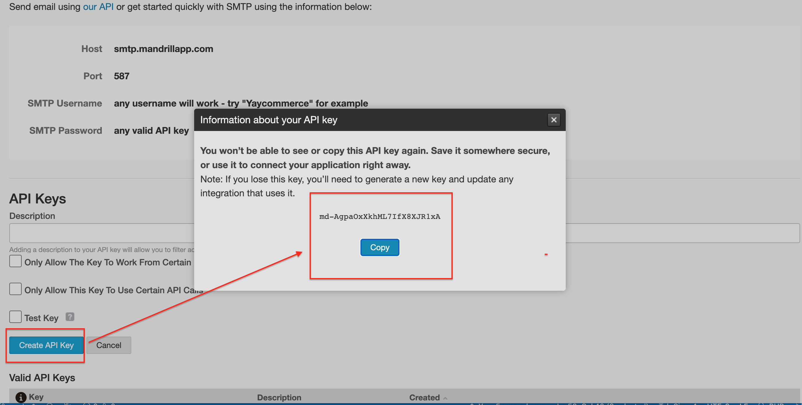 **2. Create, copy and integrate Mandrill API**