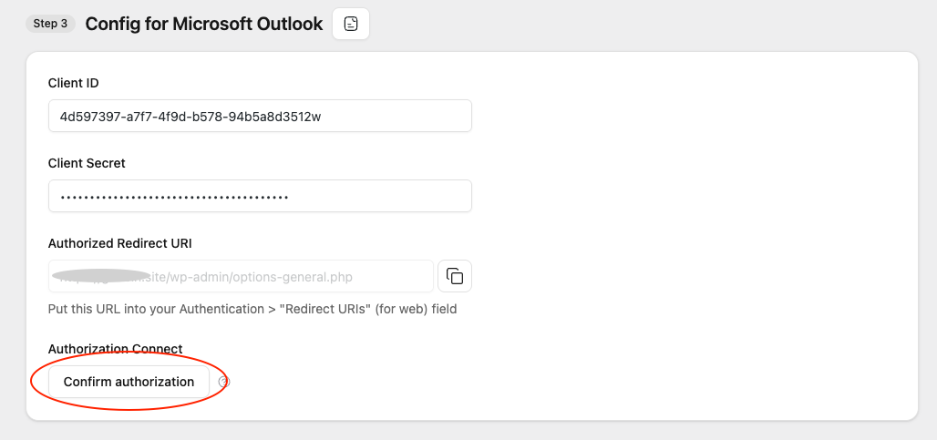 Then click on "**Confirm Authorization**" button to authorize the Microsoft app.